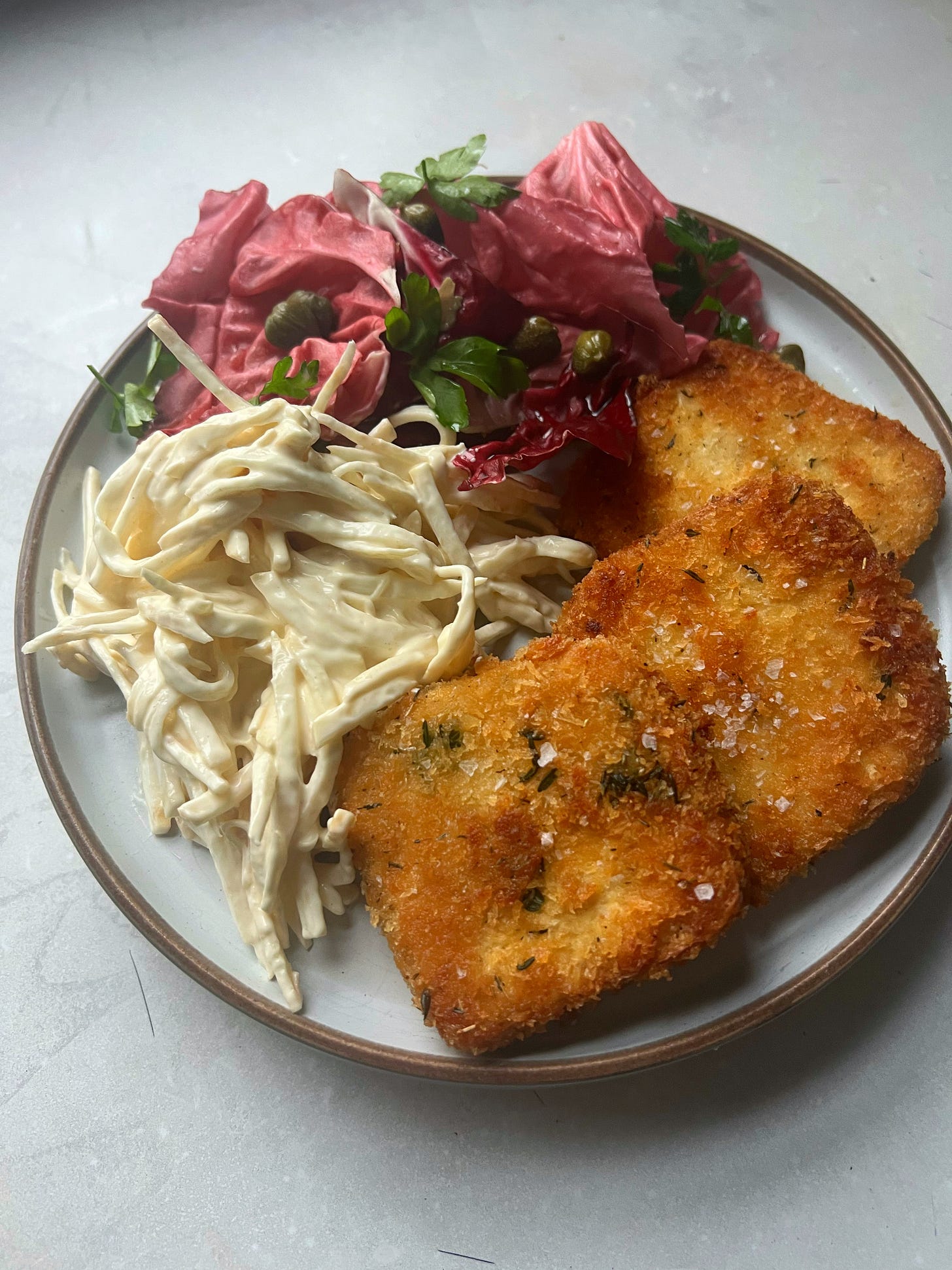 A perfect pairing of creamy celeriac remoulade with something crispy and delicious. I like to brighten up the remoulade with a little yoghurt. Always make extra as it’s a top tier fridge filler.