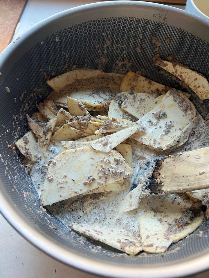 1 medium celeriac, peeled, halved and very finely sliced into half moons with a mandoline or sharp knife